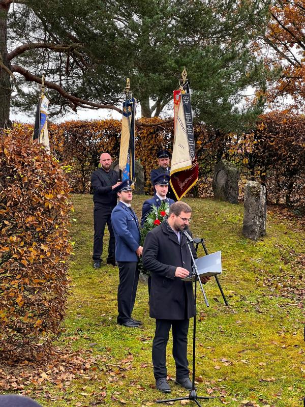 "An dieser Stelle möchte Ich noch einen Dank aussprechen. An all diejenigen die dieses Jahr so zahlreich für den Erhalt, Schaffung und Pflege solcher Gedenkstätten gespendet haben. Hier in Kriegenbrunn wurden dieses Jahr fast 1400€ gespendet. Dies ist das bisher das beste Ergebnis! Allen Spender*innen ein großes Dankeschön. Ein besonderen Dank geht auch an die Sammler, denn ohne diese wäre es nicht möglich gewesen! Auch ein großes Dankeschön im Namen der Krieger und Soldatenkameradschaft Kriegenbrunn. Ausdrücklich bedanken möchte ich mich auch noch beim Bürgergesangsverein Kriegenbrunn für den musikalischen Beitrag sowie bei der Freiwilligen Feuerwehr und der Krieger und Soldatenkameradschaft für die Mitgestaltung dieser Gedenkfeier. Zu guter letzt Bedanke ich mich noch bei allen Anwesenden Bürgen für das zahlreiche erscheinen und Aufmerksamkeit."