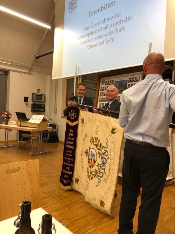Die Patenschaft für die Fahne wurde nun von der Soldatenkameradschaft Eltersdorf 1876 übernommen. Der dortige Vorstand Klaus Böhner brachte aus diesem Anlass ein Fahnenband mit entsprechender Widmung an der Fahnenspitze an.