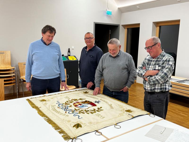 Teile des Vorstandes bei der Begutachtung der Vereinsfahne.